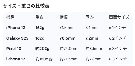 メリット: 「軽さ」と「性能」の両立ならこれ一択です。iPhone 12(162g)とほぼ同じ重さなのに、画面はより大きく、処理性能は現行Androidでトップ。動画編集(CapCut等)も非常にスムーズです。