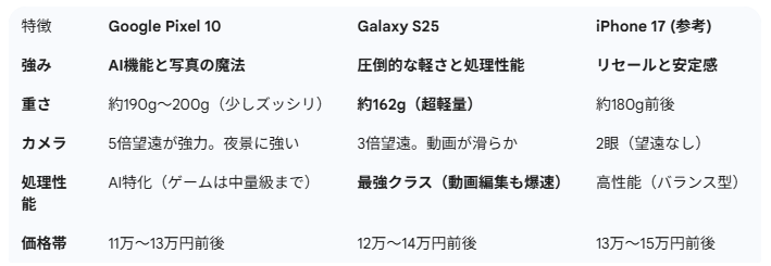 これらの情報をいただければ、iPhone 17とAndroid端末の中から、あなたのニーズに最も合った選択肢を具体的にご提案できます!